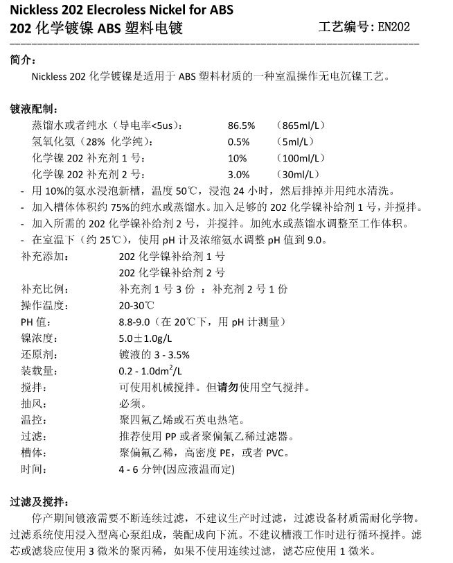 202化學(xué)鍍鎳 ABS 塑料電鍍 Nickless 202 Elecroless Nickel for ABS